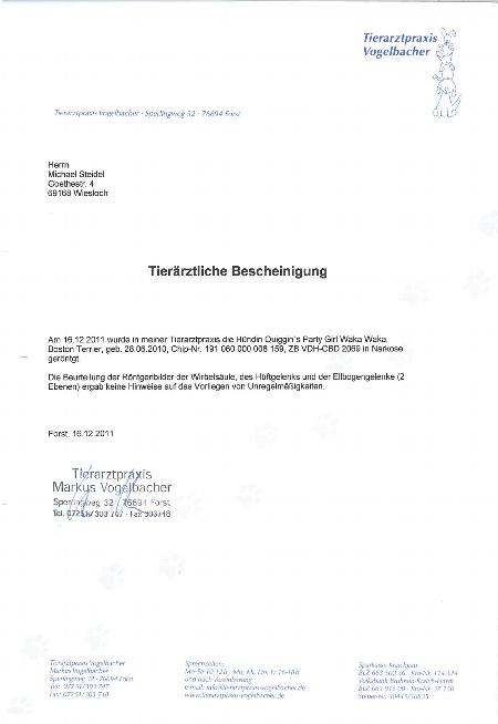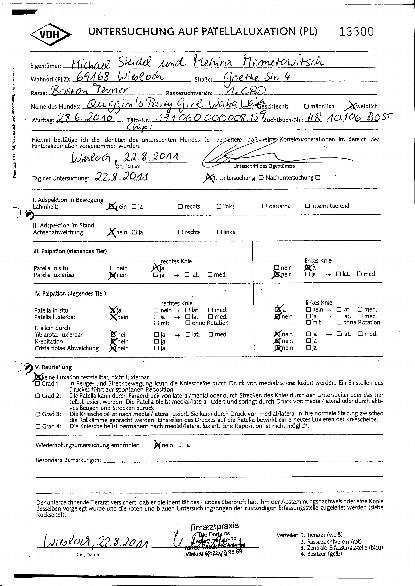 Bexter wurde heute auf HD, ED und Patella getestet.Die HD-Auswertungsverfahren wurden nach standardisierten Bedingungen durchgeführt. Die Bilder wurden in der Tierarztpraxis Vogelbacher unter Narkose aufgenommen. Es liegen keine Hinweise auf das Vorliegen von HD und ED vor. Die Aufnahmen sind wie aus dem Lehrbuch!Zuvor wurde er auf Patellaluxation getestet, auch hier liegen keine Hinweise vor.Diese Untersuchungen haben wir auf Empfehlung unsere Agilitytrainerin vorgenommen. Wir sind happy und werden nun die ersten Turniere in Angriff nehmen. |